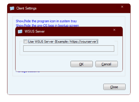 An overview on configuring your WSUS server address in the Reboot Restore client for seamless integration with your internal WSUS server.